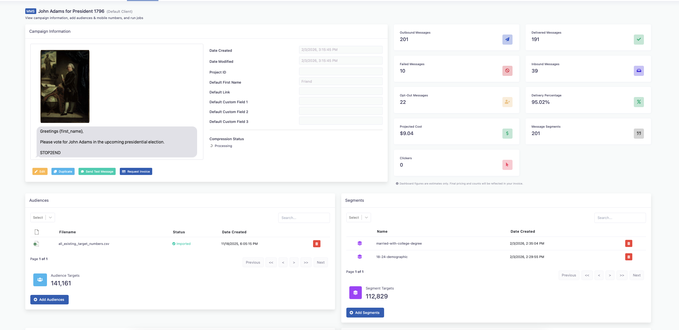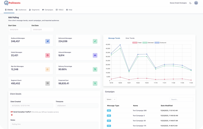 Politexts gives staff the ability to upload lists, build segments, craft messages, and launch campaigns without waiting on an account rep.