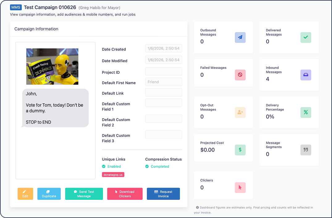 Politexts combines the tools modern campaigns expect: self-service creation, two-way conversations, SMS/MMS/video messaging, with analytics, suppression, roles, and compliance controls designed specifically for political operations.